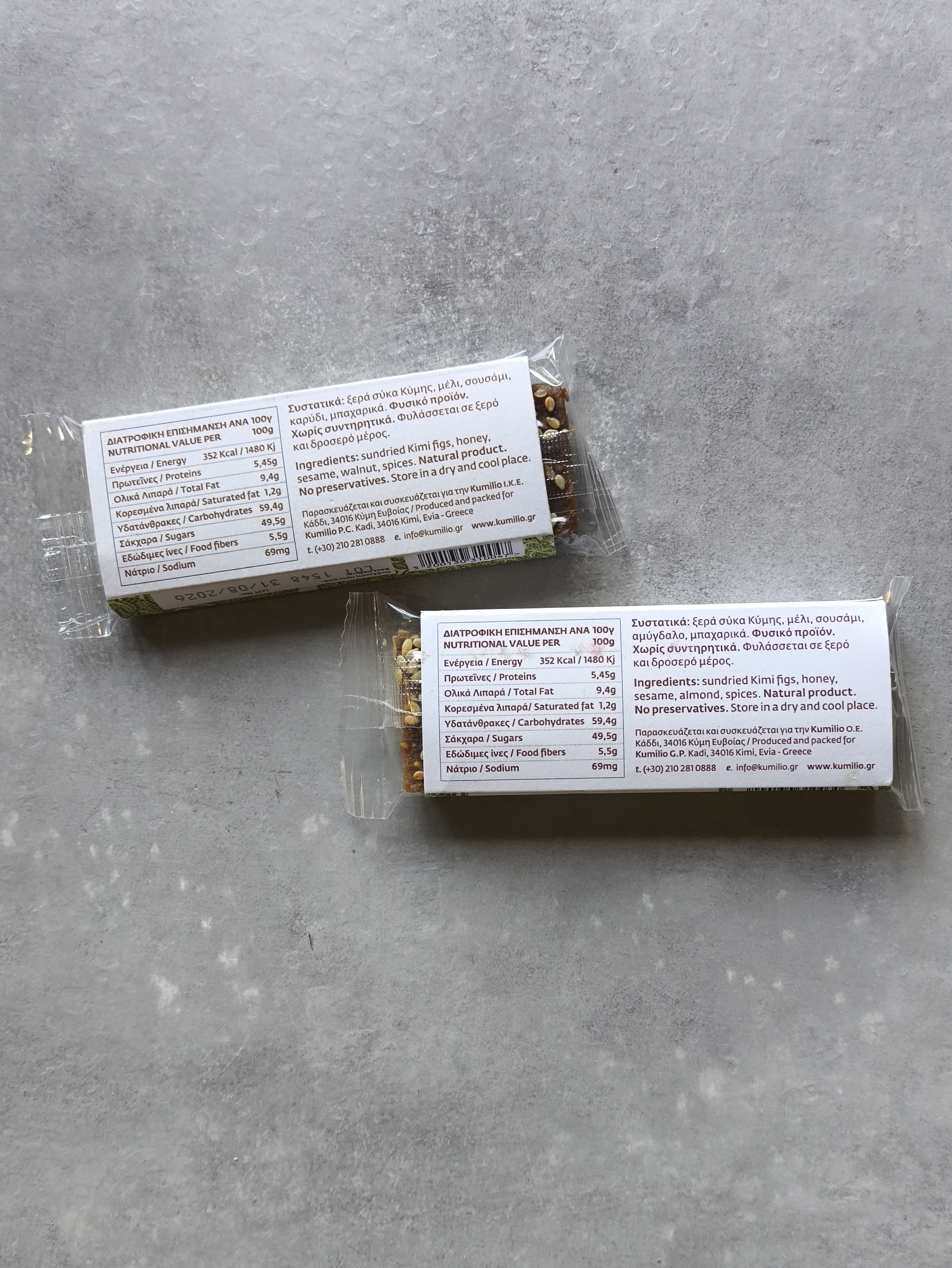 Skład: figi Kimi suszone na słońcu, miód, sezam, orzechy włoskie, przyprawy