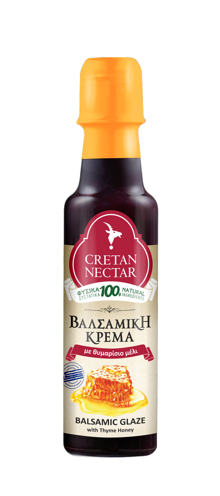 Krem balsamiczny Cretan Nectar z miodem tymiankowym została stworzona dla miłośników nowoczesnej gastronomii i osób poszukujących czystych, surowych składników. Bogata mieszanka octu balsamicznego z tradycyjną melasą winogronową i miodem tymiankowym stworzyła przyprawę o delikatnej, kremowej konsystencji i pełnym, słodko-kwaśnym smaku, która doskonale komponuje się z zielonymi sałatkami, surowymi i grillowanymi warzywami, pieczonym mięsem i filetami rybnymi. Połącz z naleśnikami, suszonymi orzechami, jogurtem, lodami lub owocami, aby uzyskać miłą, smaczną niespodziankę.