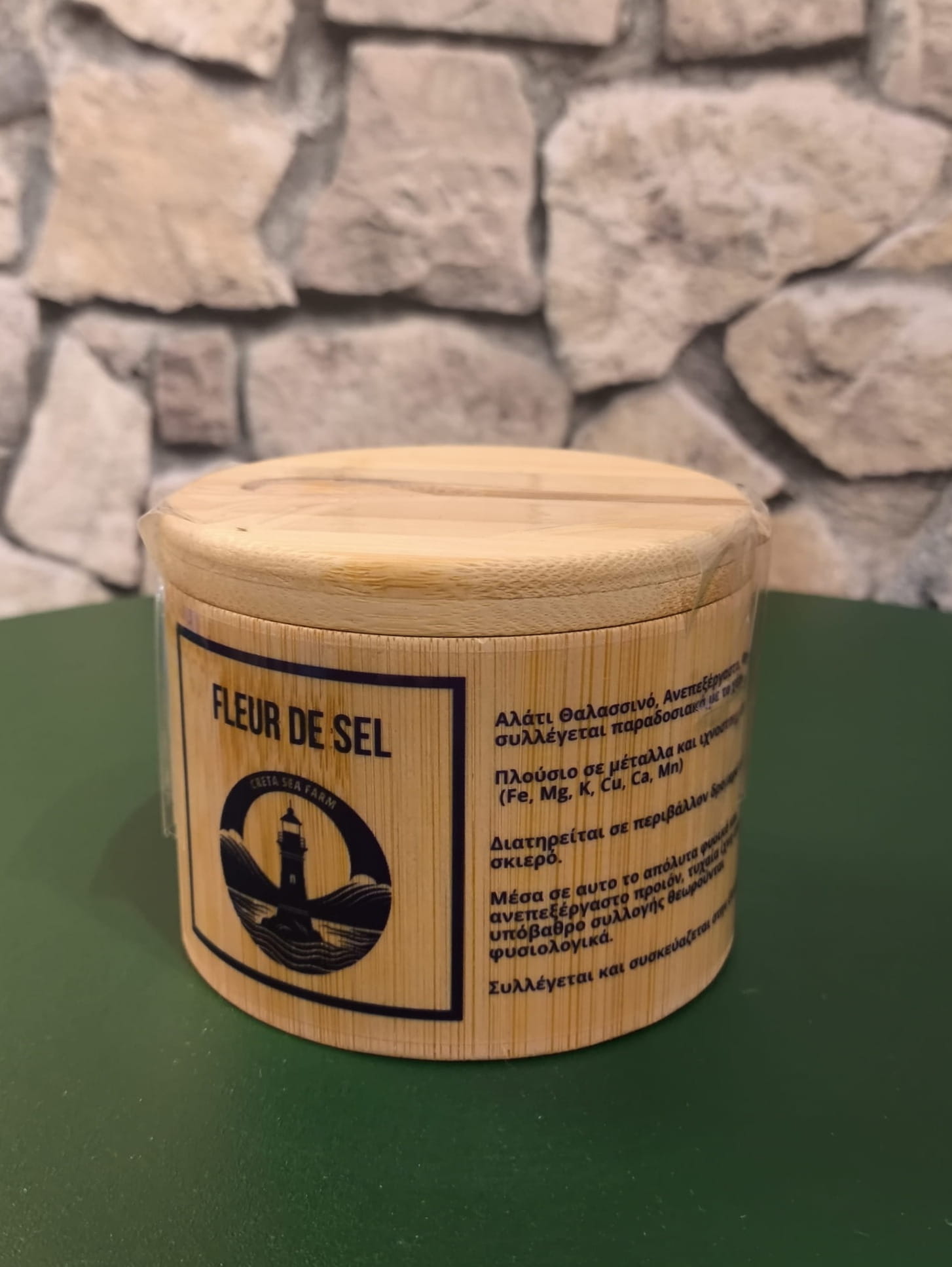 Prosto z kreteńskich wybrzeży - ręcznie zbierana, nieprzetworzona sól morska znana jako fleur de sel. To prawdziwy skarb natury, który powstaje z delikatnej warstwy soli tworzącej się na powierzchni wody podczas parowania.