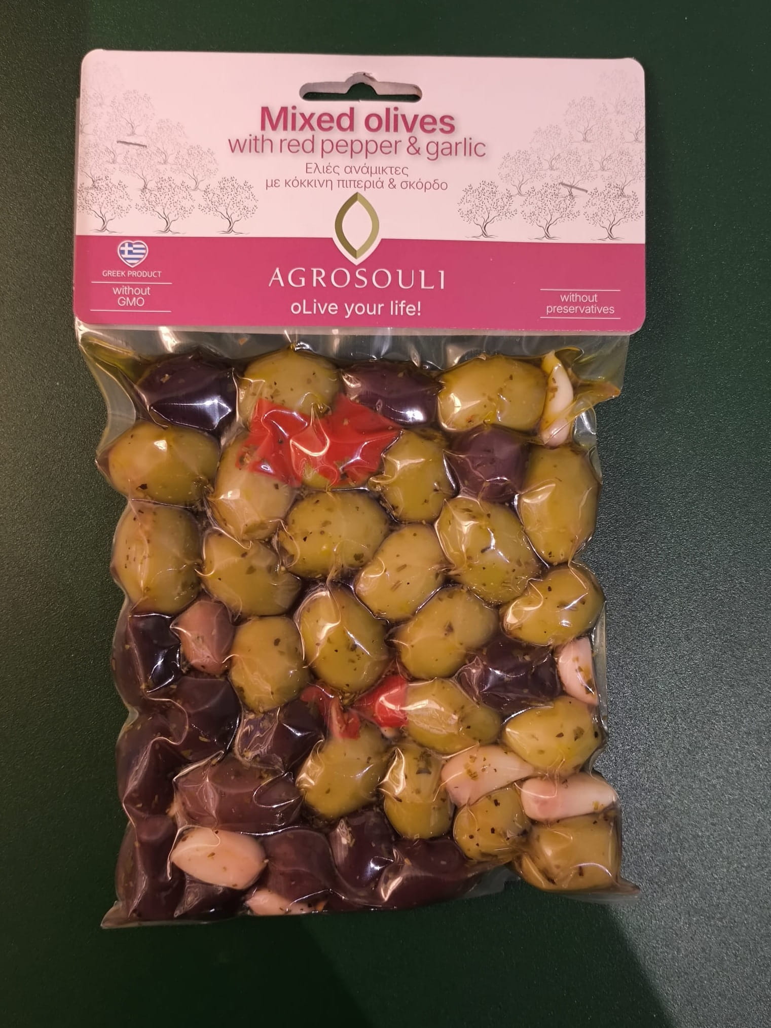 Mieszanka oliwek z czerwoną papryką i czosnkiem, 250g